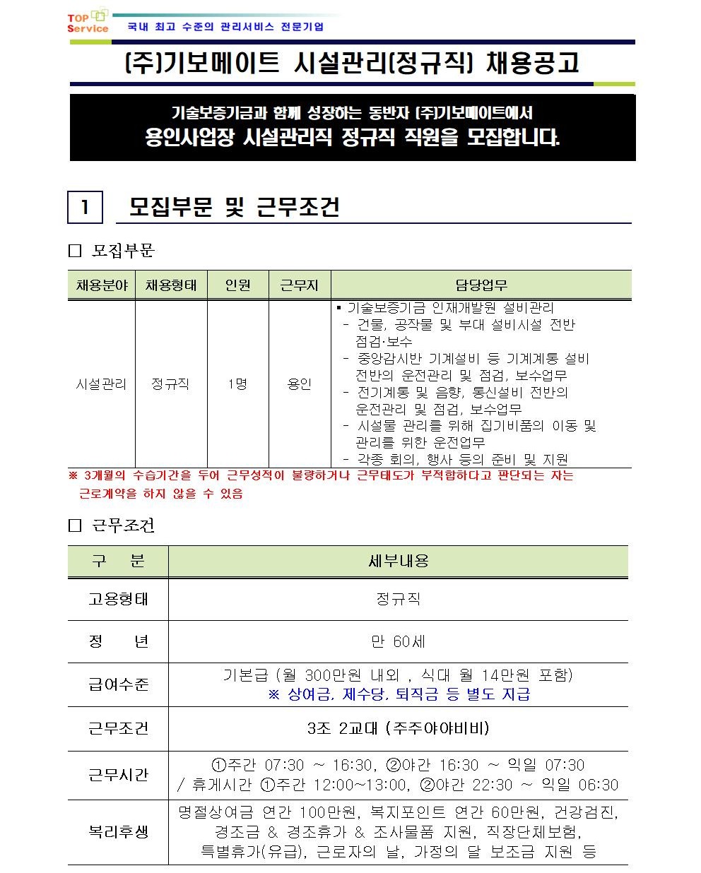 용인사업장 시설관리직 [정규직] 채용 공고