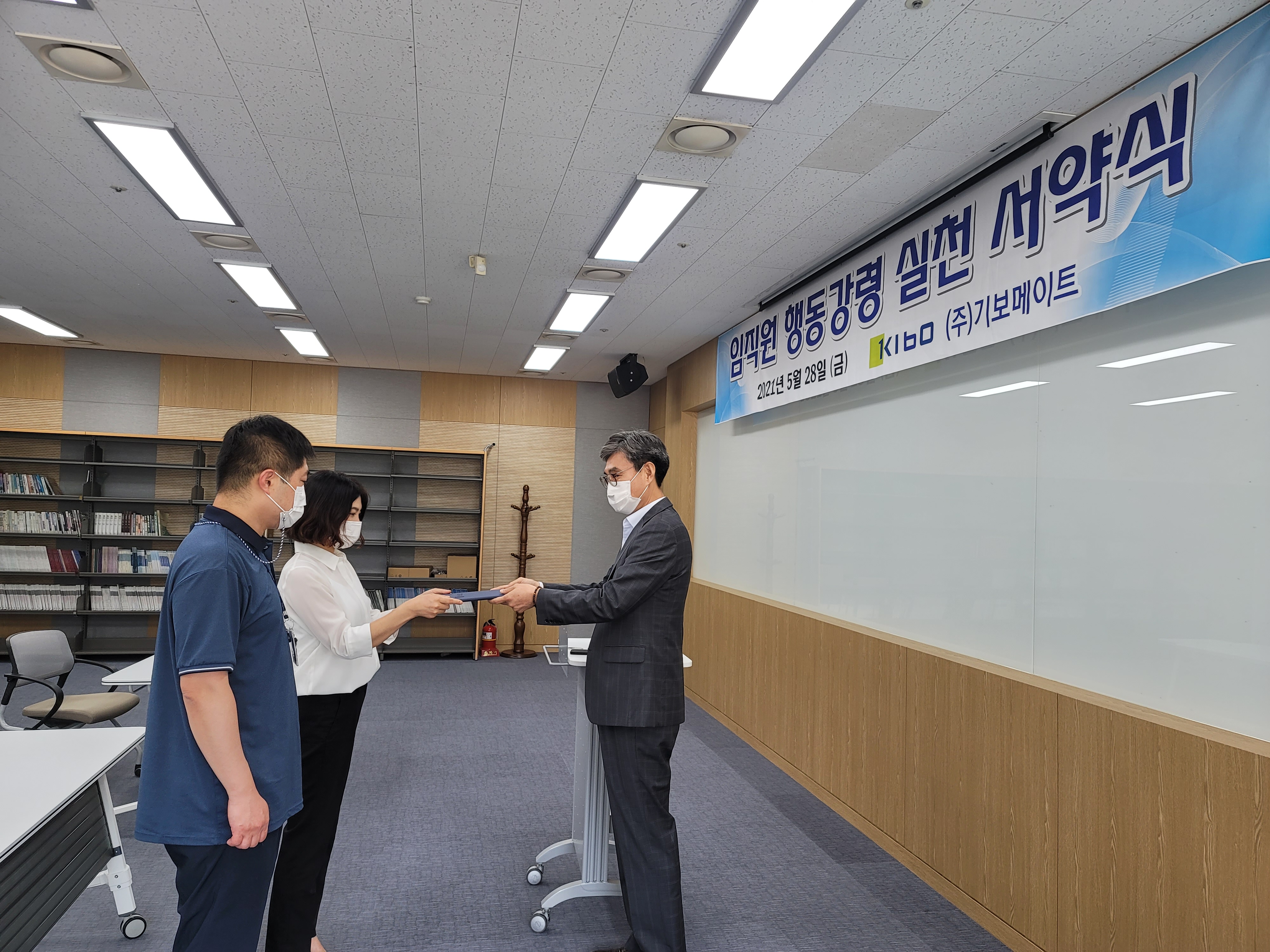 (주)기보메이트는 윤리경영의 일환으로 임직원들의 윤리의식 강화를 위해 임직원 행동강령을 제정하고 행동강령 실천 서약식을 진행하였다.