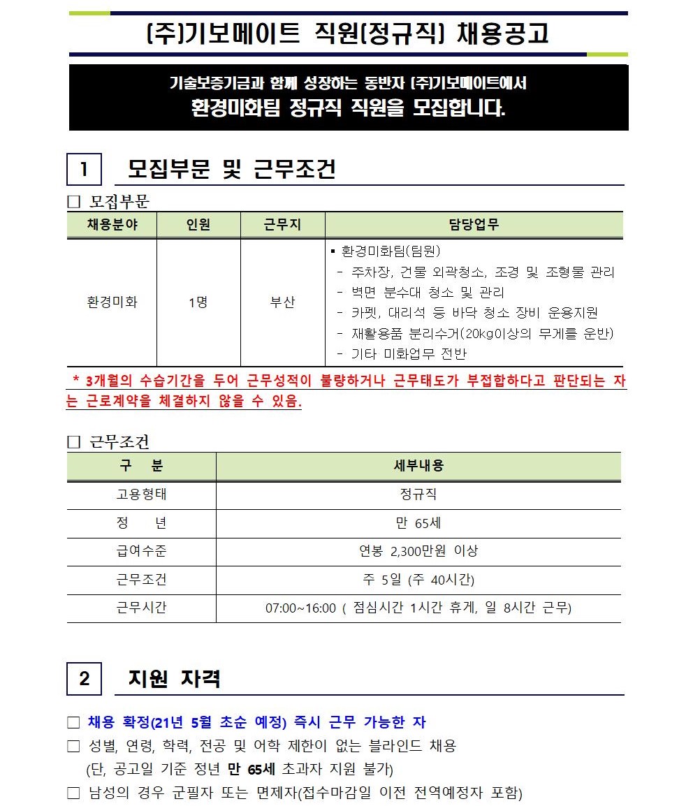 (주)기보메이트 환경미화팀[정규직] 채용공고