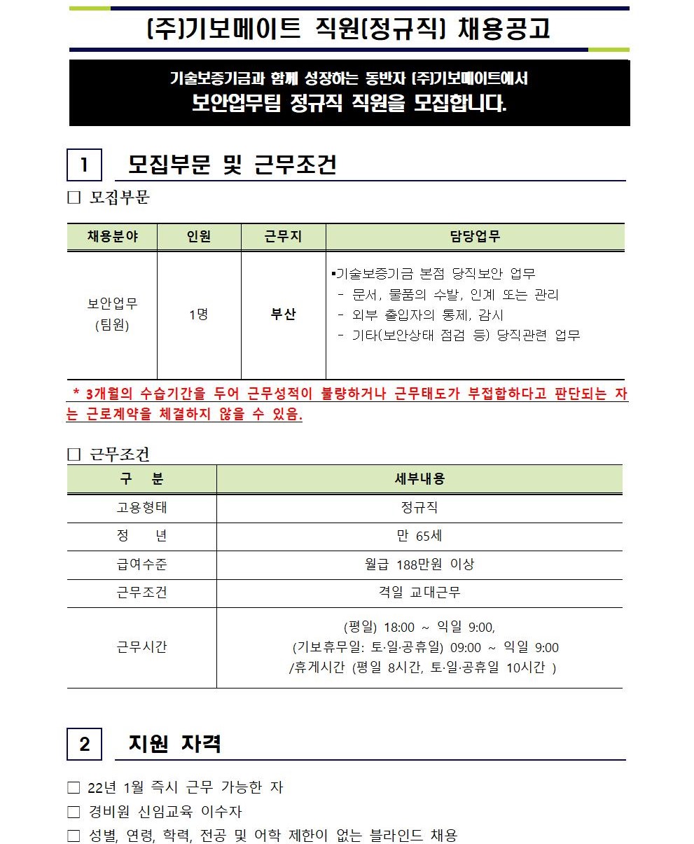 (주)기보메이트 보안업무팀 [정규직] 채용공고 - 부산