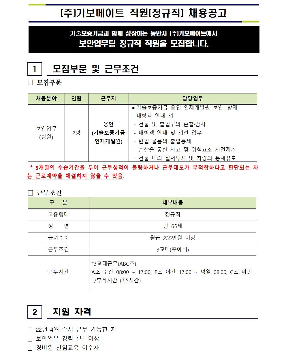 (주)기보메이트 보안업무팀 [정규직] 채용공고 - 용인