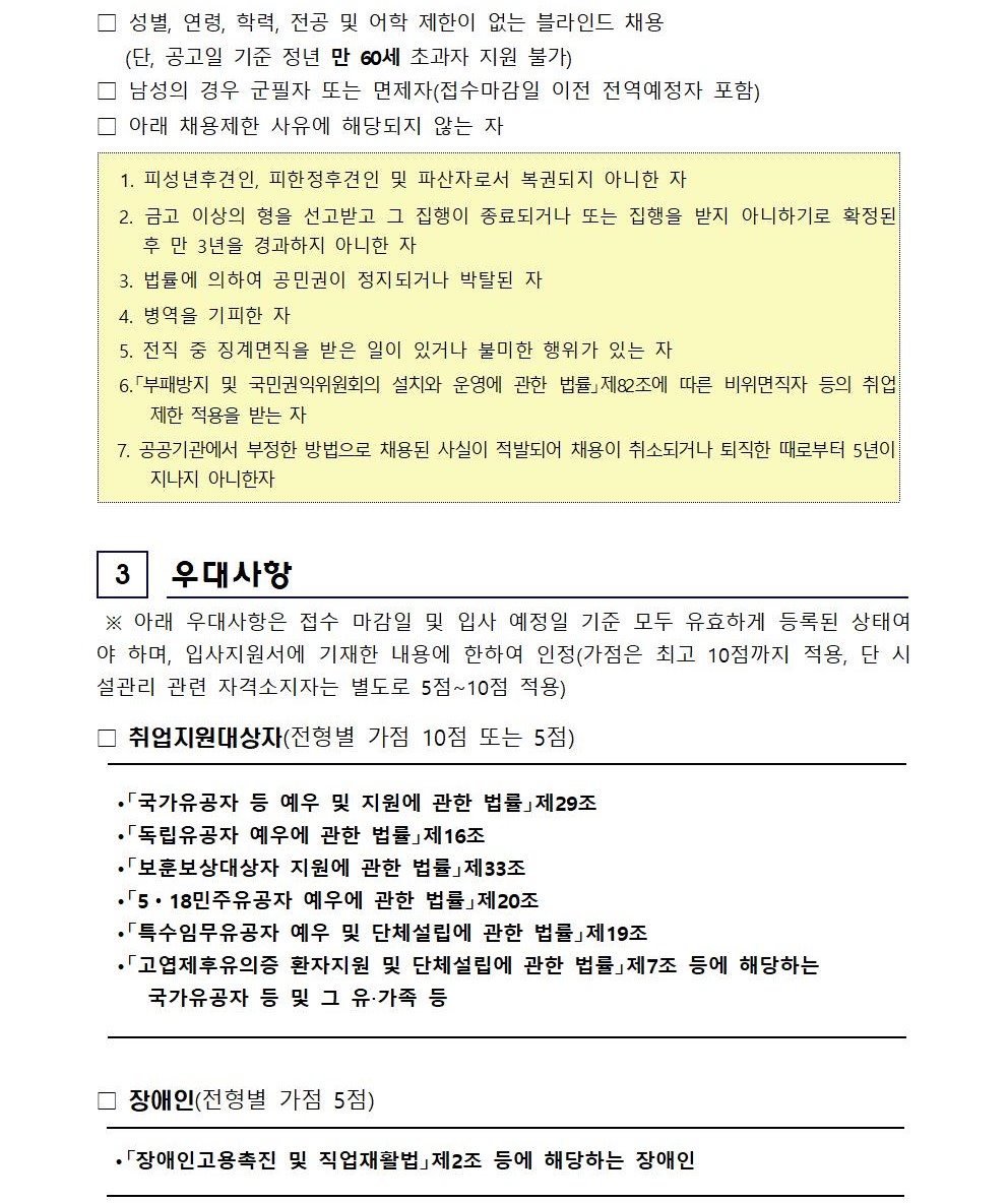 채용분야 시설관리직