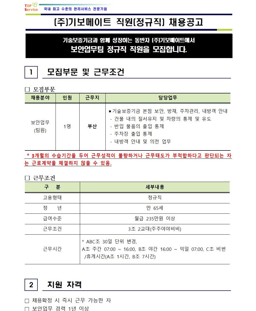 (주)기보메이트 보안업무팀 [정규직] 채용공고 - 부산