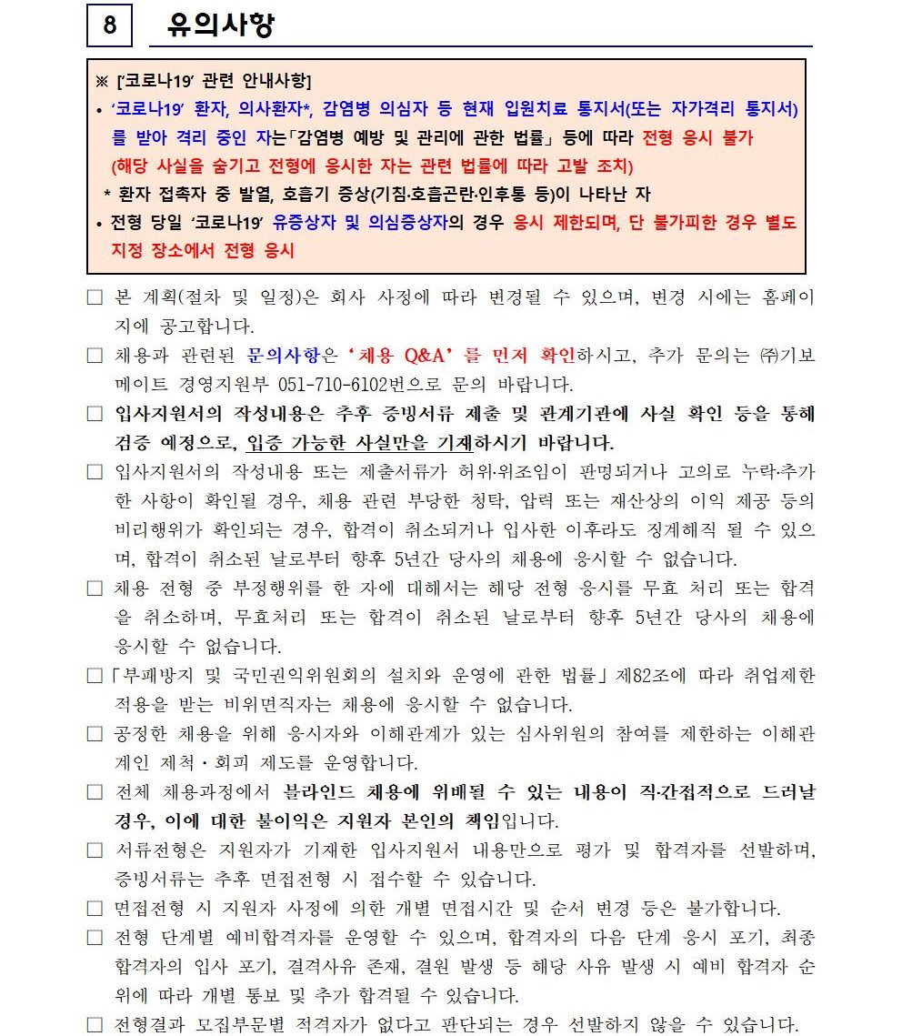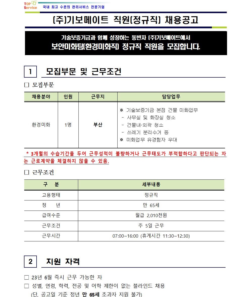 (주)기보메이트 보안미화팀 환경미화직 [정규직] 채용공고 - 부산